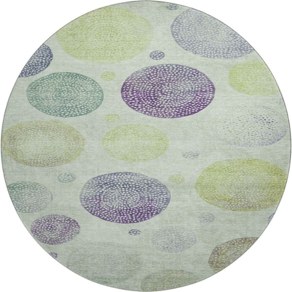Mayfield Premium Machine Washable Abstract AMF1897 Aloe 8 ft. x 8 ft. Round Rug