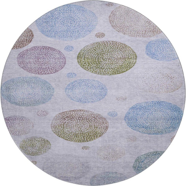 Mayfield Premium Machine Washable Abstract AMF1897 Lavender 8 ft. x 8 ft. Round Rug