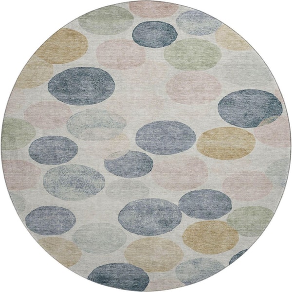 Mayfield Premium Machine Washable Abstract AMF1898 Beige 8 ft. x 8 ft. Round Rug