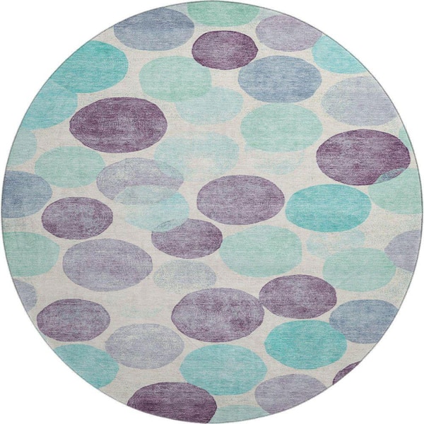 Mayfield Premium Machine Washable Abstract AMF1898 Plum 8 ft. x 8 ft. Round Rug