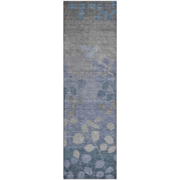 Mayfield Premium Machine Washable Abstract AMF1900 Denim 2 ft. 3 in. x 7 ft. 6 in. Runner Rug