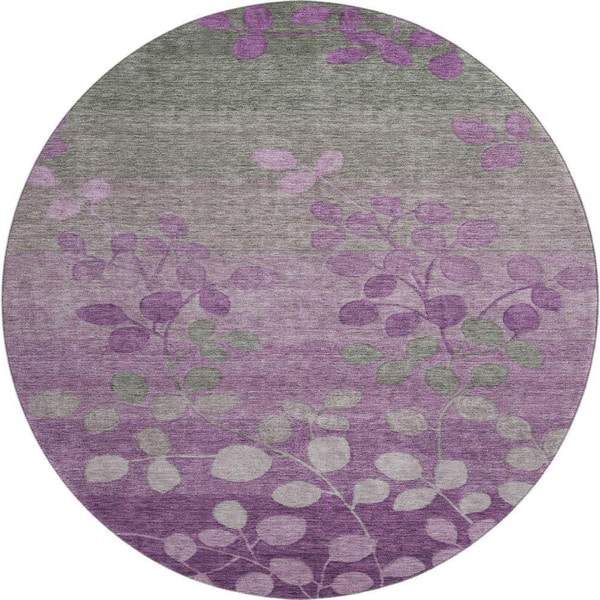 Mayfield Premium Machine Washable Abstract AMF1900 Purple 8 ft. x 8 ft. Round Rug