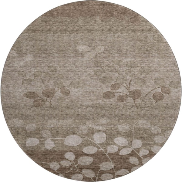 Mayfield Premium Machine Washable Abstract AMF1900 Taupe 8 ft. x 8 ft. Round Rug