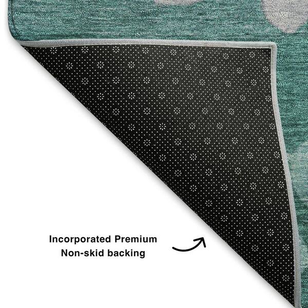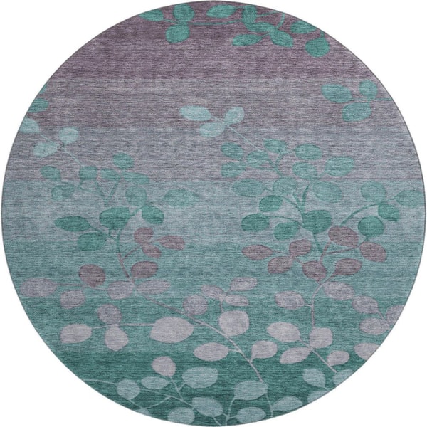Mayfield Premium Machine Washable Abstract AMF1900 Teal 8 ft. x 8 ft. Round Rug