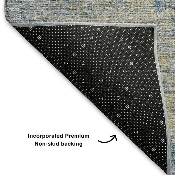 Mayfield Premium Machine Washable Abstract AMF1901 Navy 8 ft. x 8 ft. Round Rug