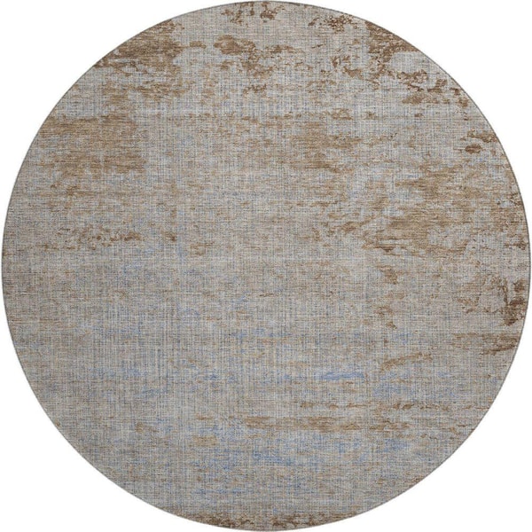 Mayfield Premium Machine Washable Abstract AMF1901 Taupe 8 ft. x 8 ft. Round Rug