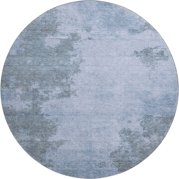 Mayfield Premium Machine Washable Abstract AMF1902 Blue 8 ft. x 8 ft. Round Rug