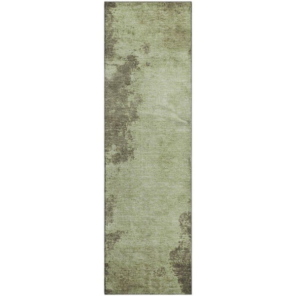 Mayfield Premium Machine Washable Abstract AMF1902 Olive 2 ft. 3 in. x 7 ft. 6 in. Runner Rug