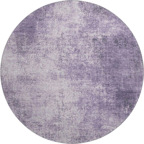 Mayfield Premium Machine Washable Abstract AMF1903 Lavender 8 ft. x 8 ft. Round Rug