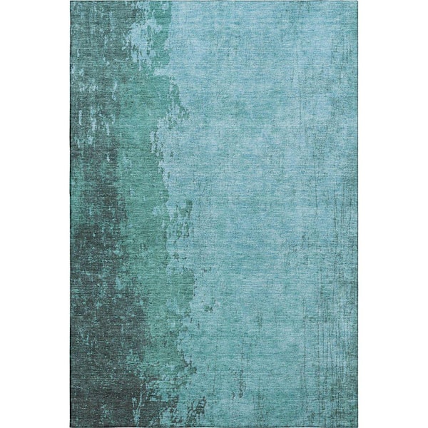 Mayfield Premium Machine Washable Abstract AMF1904 Teal 9 ft. x 12 ft. Area Rug