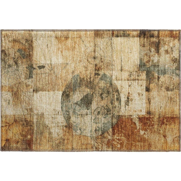 Mayfield Premium Machine Washable Abstract AMF1905 Beige 2 ft. x 3 ft. Area Rug