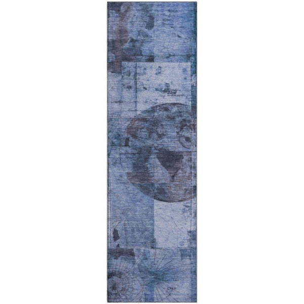Mayfield Premium Machine Washable Abstract AMF1905 Blue 2 ft. 3 in. x 7 ft. 6 in. Runner Rug