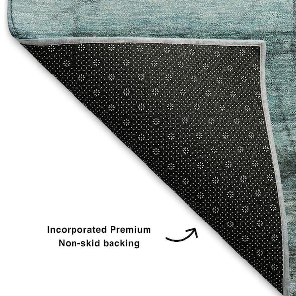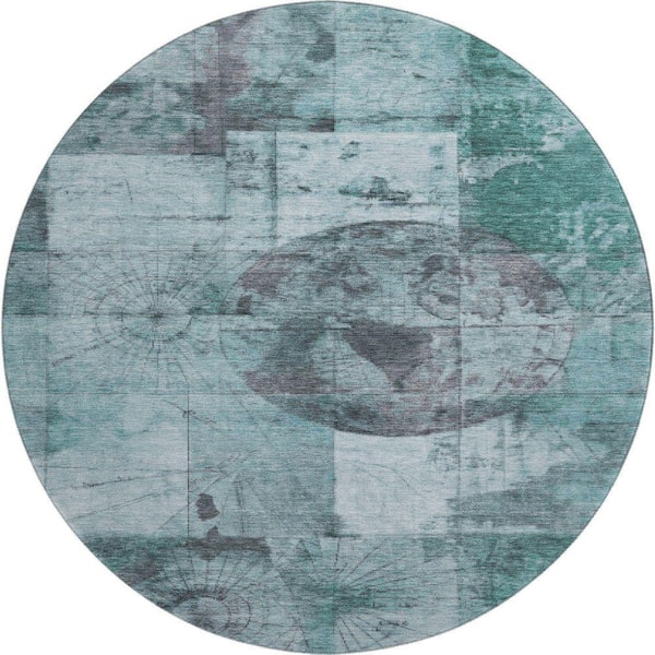 Mayfield Premium Machine Washable Abstract AMF1905 Teal 8 ft. x 8 ft. Round Rug