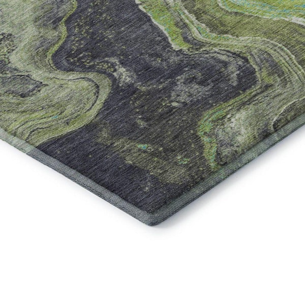 Mayfield Premium Machine Washable Abstract AMF1907 Aloe 2 ft. 3 in. x 7 ft. 6 in. Runner Rug