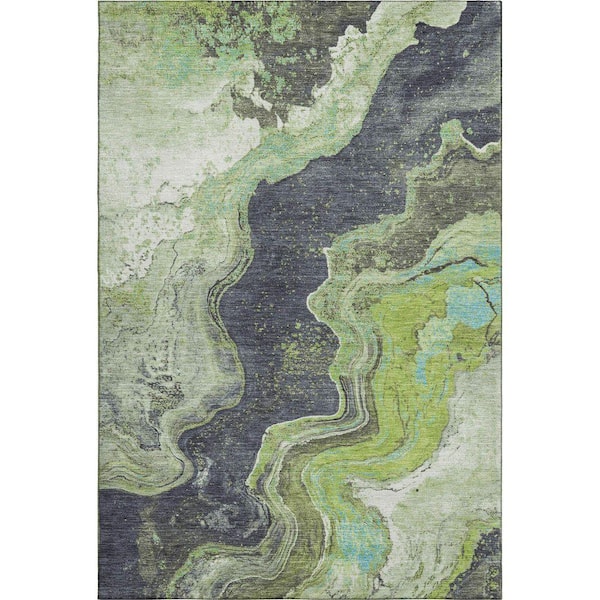 Mayfield Premium Machine Washable Abstract AMF1907 Aloe 8 ft. x 10 ft. Area Rug