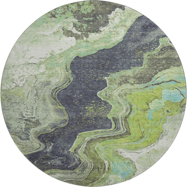 Mayfield Premium Machine Washable Abstract AMF1907 Aloe 8 ft. x 8 ft. Round Rug