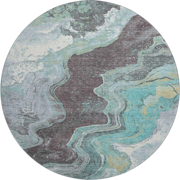 Mayfield Premium Machine Washable Abstract AMF1907 Teal 8 ft. x 8 ft. Round Rug