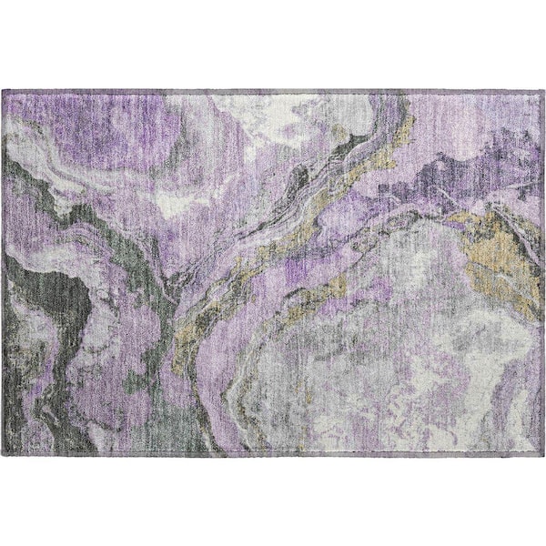Mayfield Premium Machine Washable Abstract AMF1908 Lavender 2 ft. x 3 ft. Area Rug