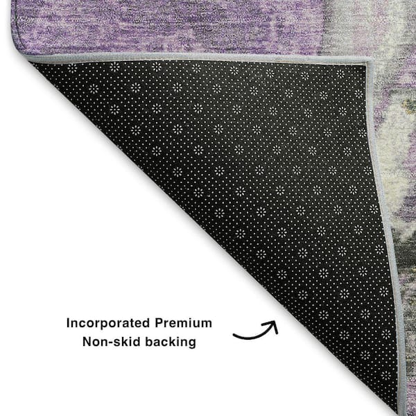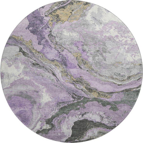 Mayfield Premium Machine Washable Abstract AMF1908 Lavender 8 ft. x 8 ft. Round Rug