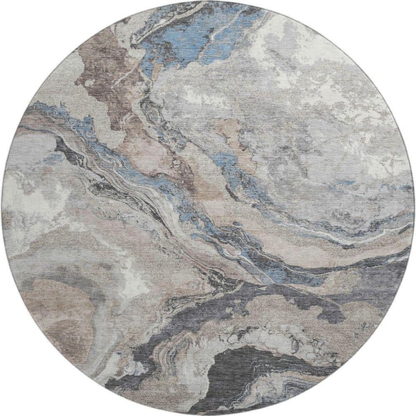 Mayfield Premium Machine Washable Abstract AMF1908 Taupe 8 ft. x 8 ft. Round Rug