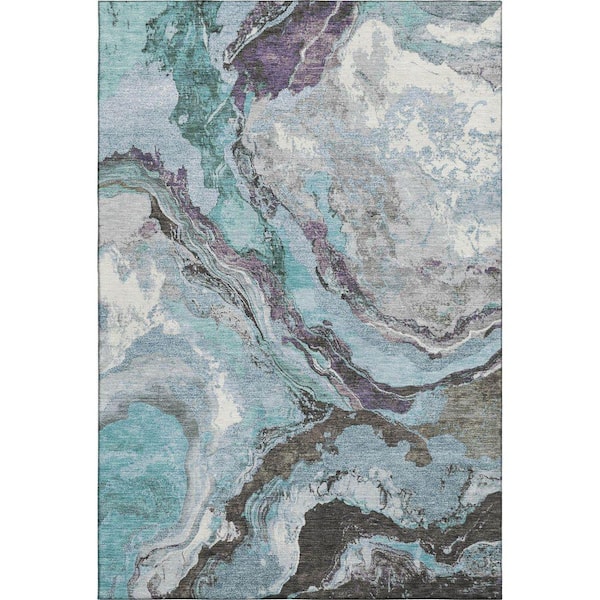 Mayfield Premium Machine Washable Abstract AMF1908 Teal 8 ft. x 10 ft. Area Rug