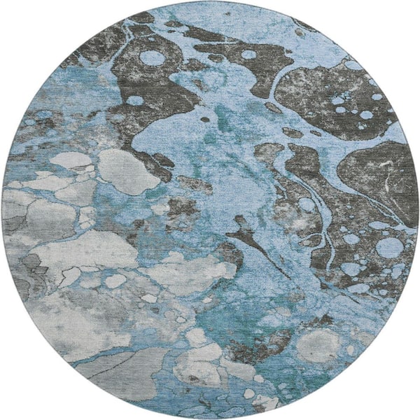 Mayfield Premium Machine Washable Abstract AMF1909 Blue 8 ft. x 8 ft. Round Rug