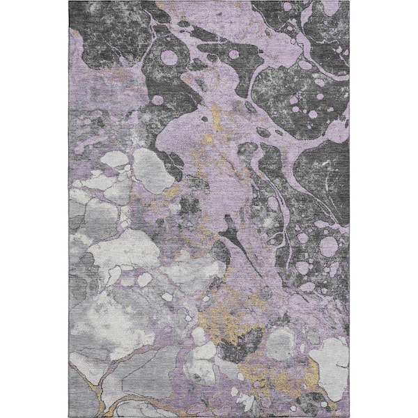 Mayfield Premium Machine Washable Abstract AMF1909 Lavender 3 ft. x 4 ft. Area Rug