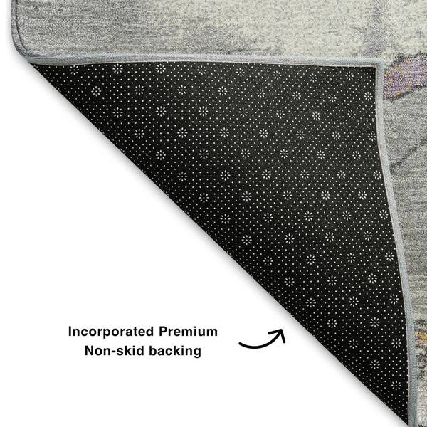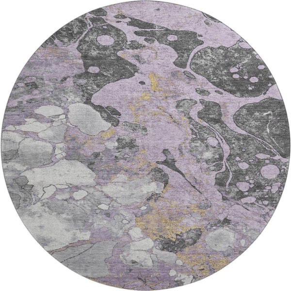 Mayfield Premium Machine Washable Abstract AMF1909 Lavender 8 ft. x 8 ft. Round Rug