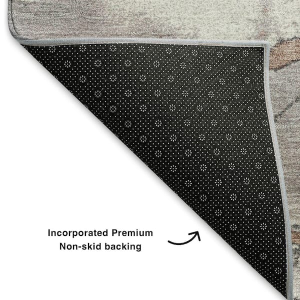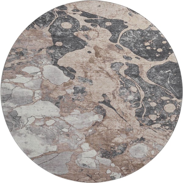 Mayfield Premium Machine Washable Abstract AMF1909 Mocha 8 ft. x 8 ft. Round Rug