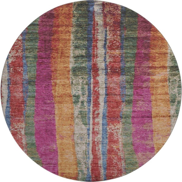 Mayfield Premium Machine Washable Abstract AMF1910 Putty 8 ft. x 8 ft. Round Rug