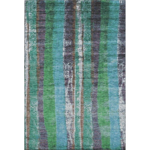 Mayfield Premium Machine Washable Abstract AMF1910 Teal 9 ft. x 12 ft. Area Rug