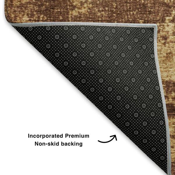 Mayfield Premium Machine Washable Abstract AMF1913 Mocha 8 ft. x 8 ft. Round Rug