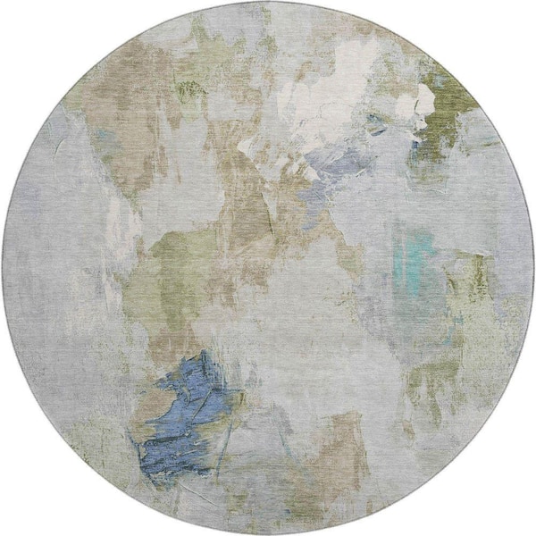 Mayfield Premium Machine Washable Abstract AMF1914 Beige 8 ft. x 8 ft. Round Rug