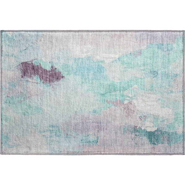 Mayfield Premium Machine Washable Abstract AMF1914 Teal 2 ft. x 3 ft. Area Rug
