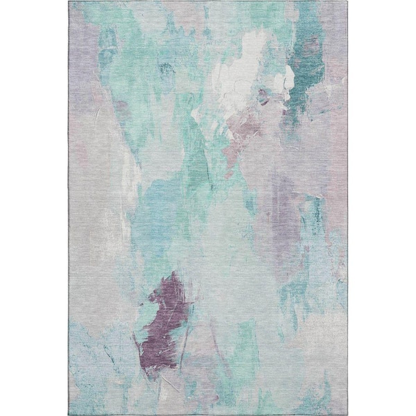 Mayfield Premium Machine Washable Abstract AMF1914 Teal 9 ft. x 12 ft. Area Rug