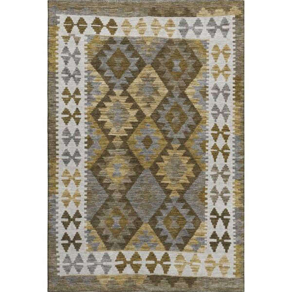 Mayfield Premium Machine Washable Abstract AMF1915 Brown 3 ft. x 4 ft. Area Rug