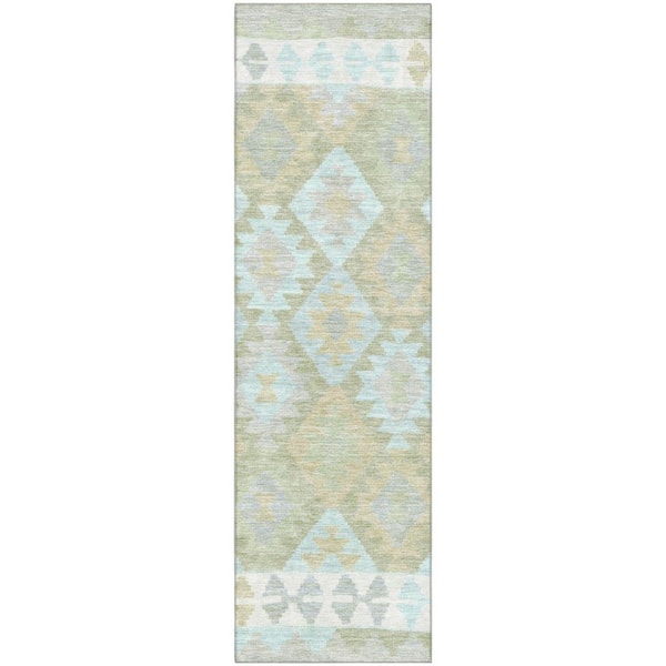 Mayfield Premium Machine Washable Abstract AMF1915 Sage 2 ft. x 7 ft. Runner Rug