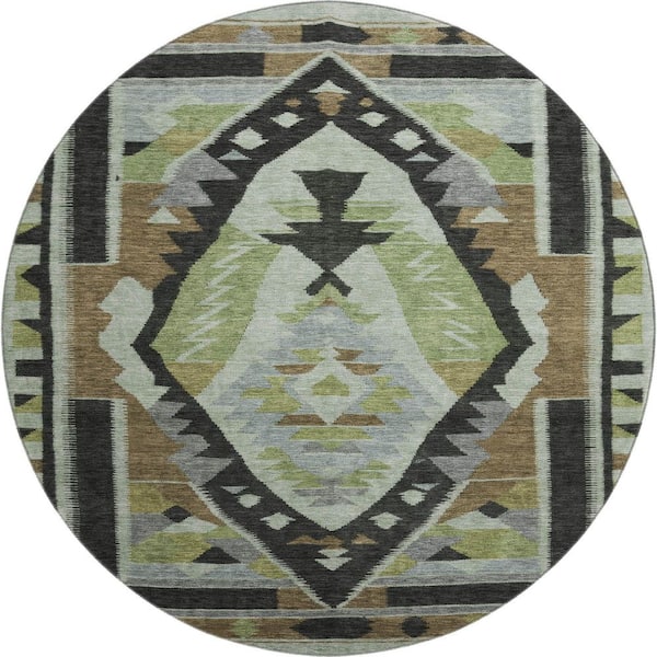 Mayfield Premium Machine Washable Abstract AMF1916 Brown 8 ft. x 8 ft. Round Rug