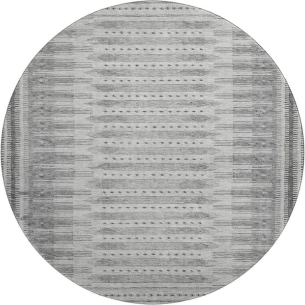 Mayfield Premium Machine Washable Abstract AMF1917 Gray 8 ft. x 8 ft. Round Rug