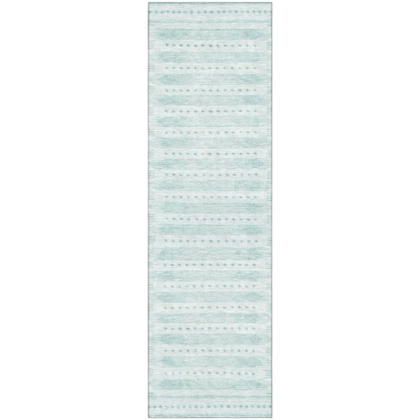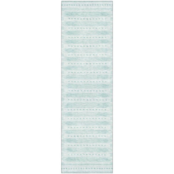 Mayfield Premium Machine Washable Abstract AMF1917 Turquoise 2 ft. x 7 ft. Runner Rug