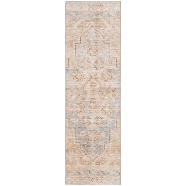 Mayfield Premium Machine Washable Abstract AMF1918 Copper 2 ft. x 7 ft. Runner Rug