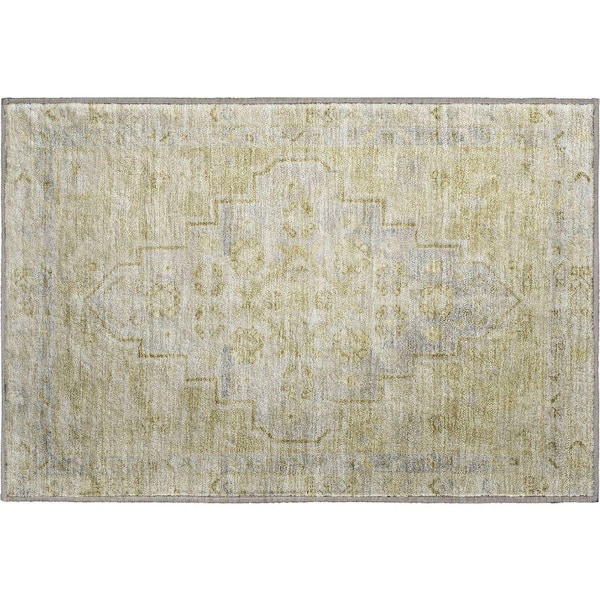 Mayfield Premium Machine Washable Abstract AMF1918 Gold 2 ft. x 3 ft. Accent Rug