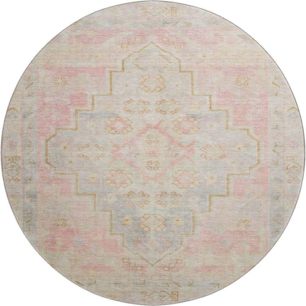 Mayfield Premium Machine Washable Abstract AMF1918 Pink 8 ft. x 8 ft. Round Rug