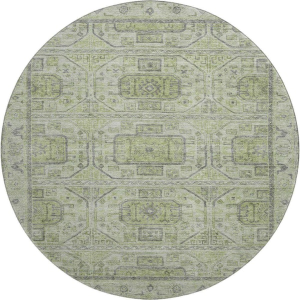 Mayfield Premium Machine Washable Abstract AMF1919 Aloe 8 ft. x 8 ft. Round Rug