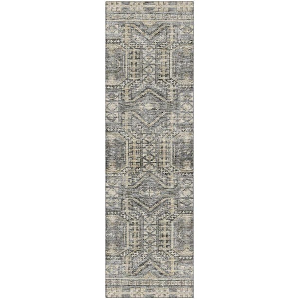 Mayfield Premium Machine Washable Abstract AMF1920 Pewter 2 ft. x 7 ft. Runner Rug