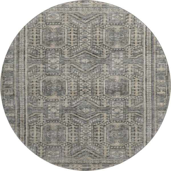 Mayfield Premium Machine Washable Abstract AMF1920 Pewter 8 ft. x 8 ft. Round Rug