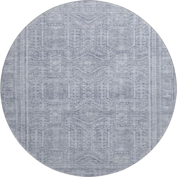 Mayfield Premium Machine Washable Abstract AMF1920 Sky 8 ft. x 8 ft. Round Rug