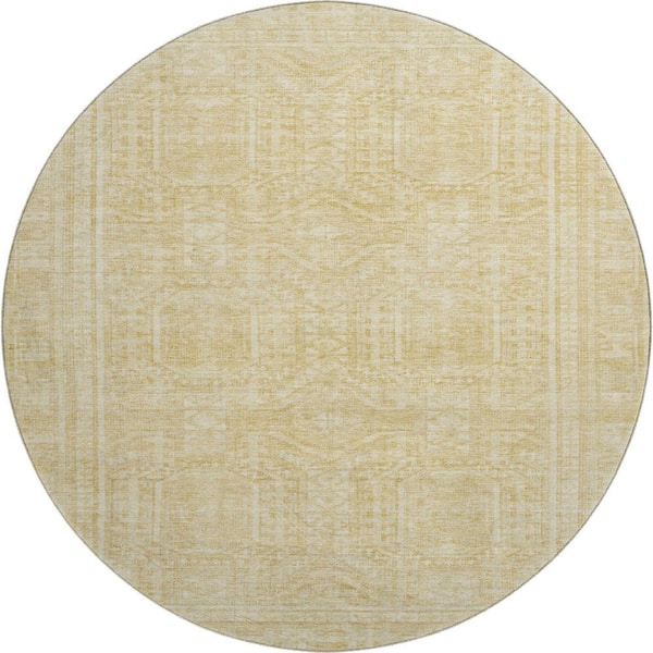 Mayfield Premium Machine Washable Abstract AMF1920 Wheat 8 ft. x 8 ft. Round Rug