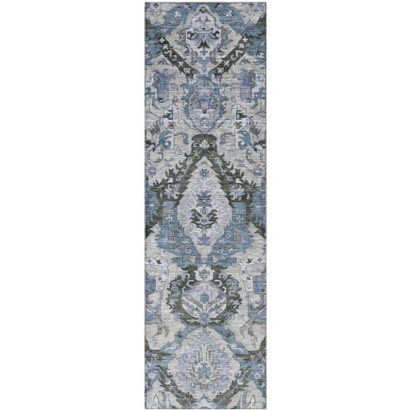 Mayfield Premium Machine Washable Abstract AMF1921 Gray 2 ft. x 7 ft. Runner Rug