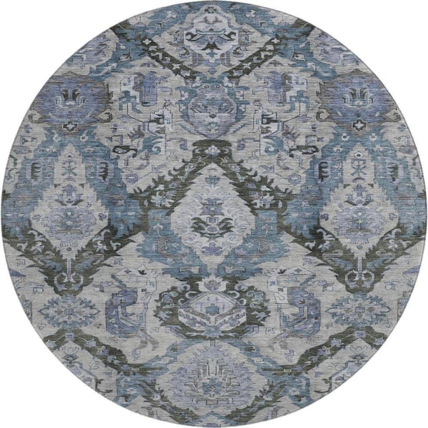 Mayfield Premium Machine Washable Abstract AMF1921 Gray 8 ft. x 8 ft. Round Rug